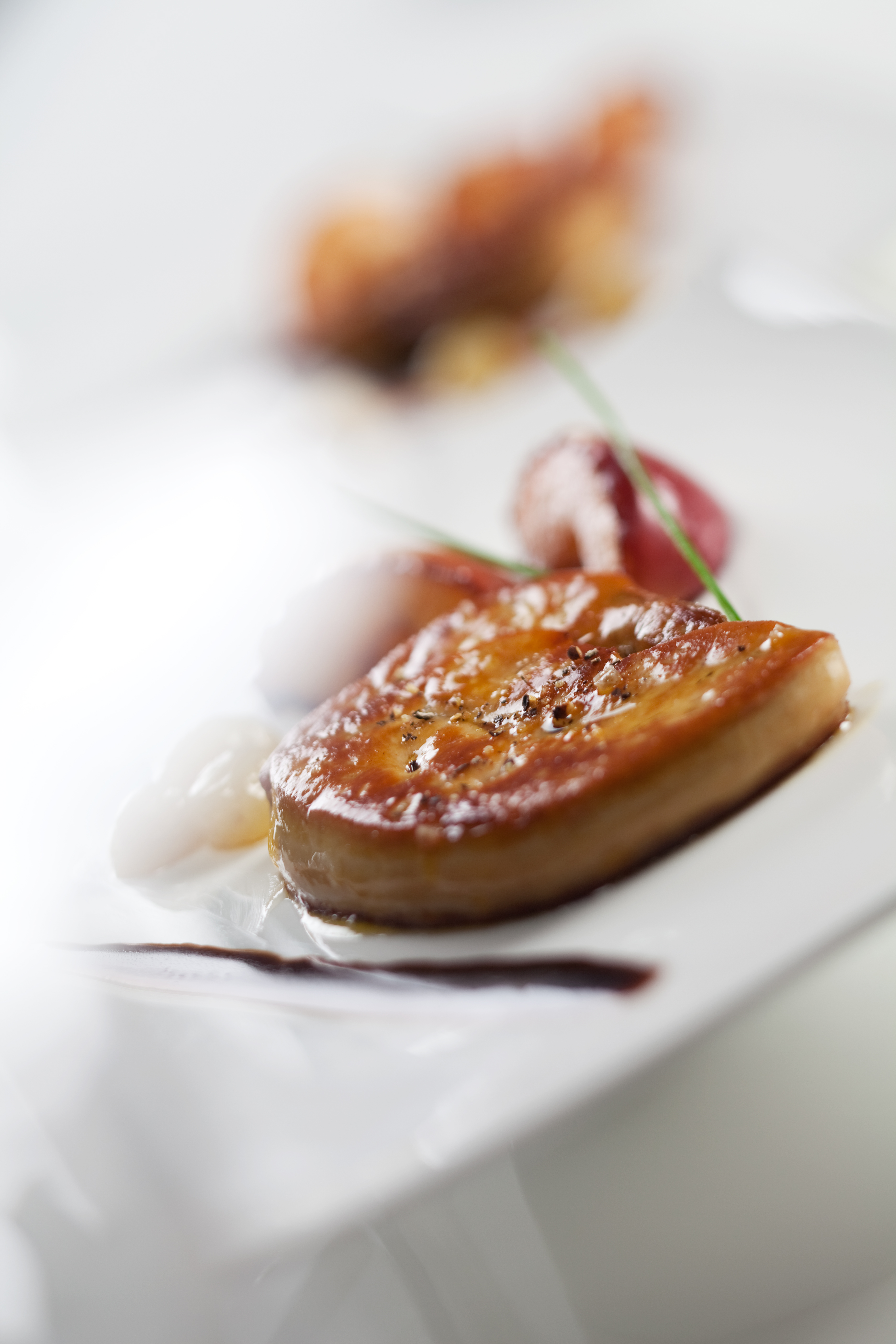 Remove the foie gras escalopes and accompaniement from the tray. Arrange on a plate and spoon the sauce over the slice of escalope. Heat in the microwave for 1 minute or in the oven at 180°C ( 360°F) for 4 to 5 minutes. Add a pinch of fleur de sel and ground pepper. Ready to enjoy!
