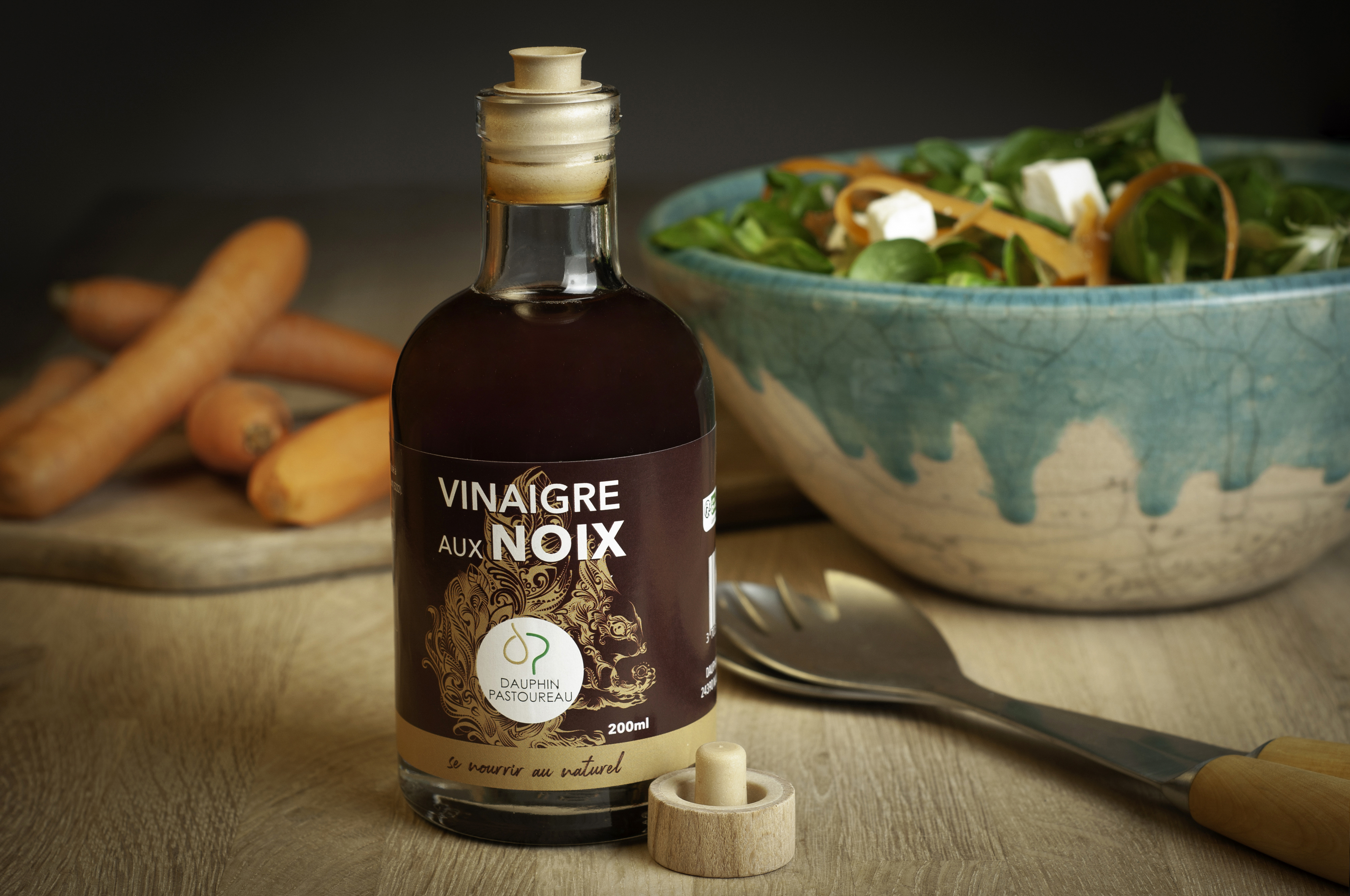 Walnut vinegar has a unique flavor, the result of a clever blend of a wine vinegar carefully selected by us to harmonize with our green walnuts. Our vinegar gives off a subtle and delicate fragrance. By cooking, its taste qualities make it an excellent choice for seasoning salads, roasted vegetables, for marinating meats and fish, or even for deglazing cooking juices, adding a rich and complex taste dimension to your dishes.