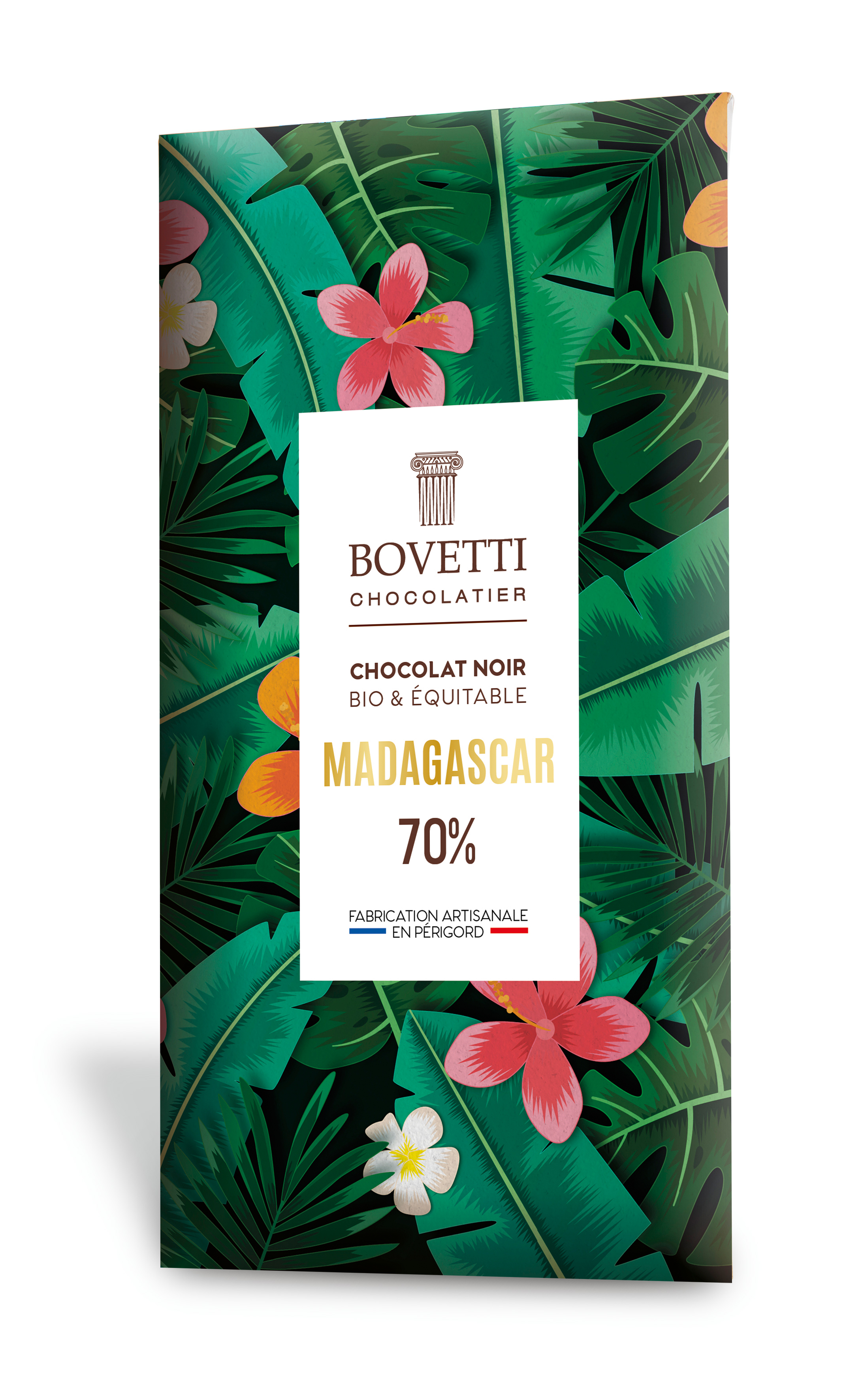 The bars reflect the distinct characteristics of the region where the cocoa is grown, such as fruity, floral, or earthy notes. Each bar is a journey through the world : Ecuador, Madagascar, Peru, Santo Domingo, Sao Tome, Sierra Leone and soon Honduras.