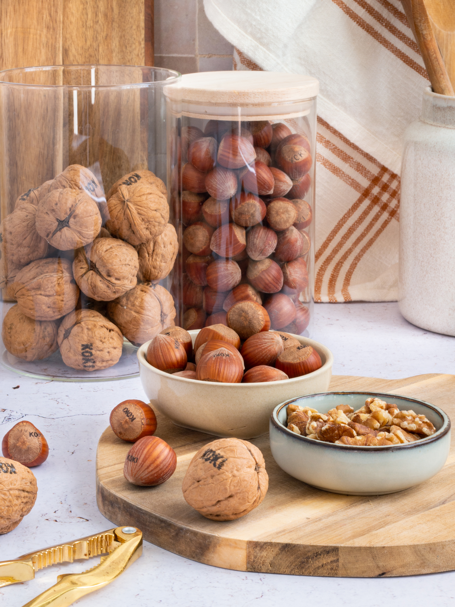 Koki is the European market leader for inshell hazelnuts and the main supplier of Lara walnuts, a round variety with a light shell and a subtle, sweet flavor.